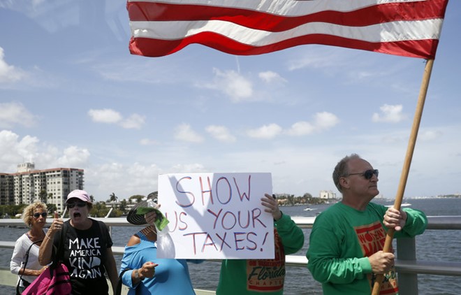 在华盛顿,至少5万人聚集国会大厦前,標语写著「他在躲躲藏藏什么?」一位抗议者说:「我们必须知道他的投资、他的捐款,以及他有没有任何瓜葛牵扯。」另一位抗议者说:「他如果没有什么隱瞒,就应该公佈他的报税资料。」