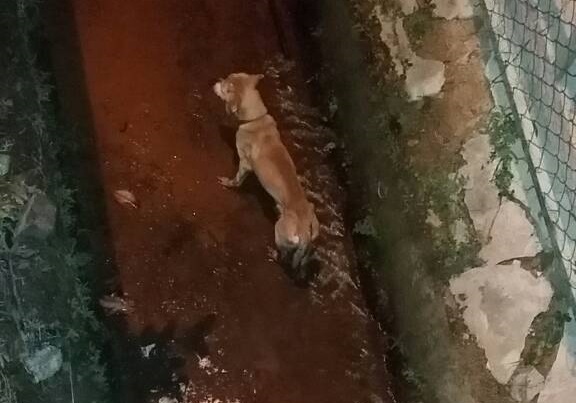 何佳立是上周六晚到路阳达迈靠近荣耀中心(面对住宅区),打算到餐厅用餐时,在停车场泊好车,打算步往餐厅时,无意间瞥见一只小猫站在水沟旁张望,彷佛水沟内有奇怪的事物,引起何佳立好奇心,就前往张望,结果发现一只落魄的狗只掉进深达2.4米水沟内,爬不上来。