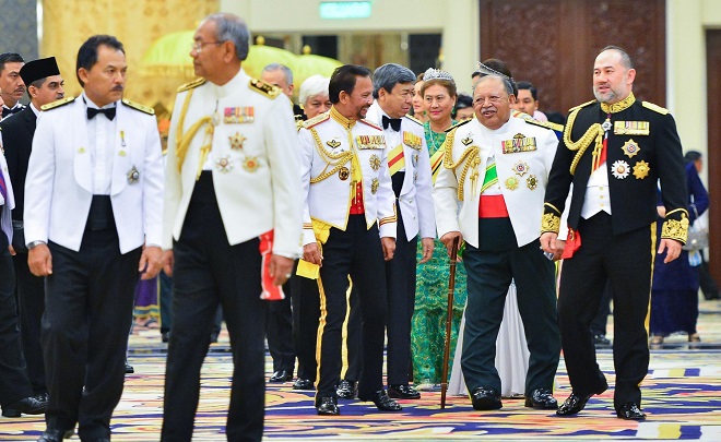 汶莱苏丹陛下昨日下午乘搭个人专机飞往马来西亚首都吉隆坡,并在昨晚在吉隆坡大皇宫,出席第15任最高元首吉兰丹州苏丹穆罕默德五世登基国宴,与马来西亚首相、内阁部长、多位马来统治者与夫人一同出席盛大的国宴。