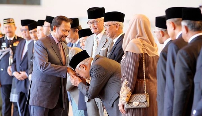 皇太子、本基兰莫哈末波嘉亲王、本基兰苏菲里波嘉亲王、本基兰则菲里波嘉亲王、本基兰阿都马力王子、本基兰阿都华基尔王子、本基兰亚纳阿米拉公子,以及本基兰亚纲玛斯娜公主(汶莱外交巡回大使等人。)