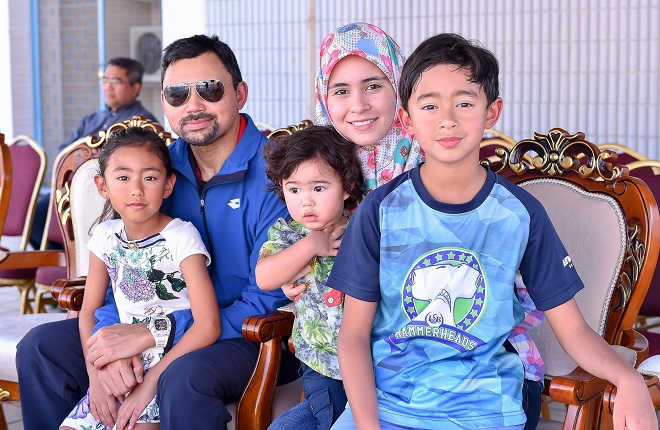 (汶莱斯市28日讯)汶莱摄政王哈志阿尔慕达迪比拉,与皇太妃哈嘉莎拉,携带孩子们,今日下午在巴拉克斯国家游泳池,出席观赏汶莱第25次分龄游泳锦标赛。