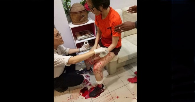 「受害者左手臂伤势严重,导致大量出血。」