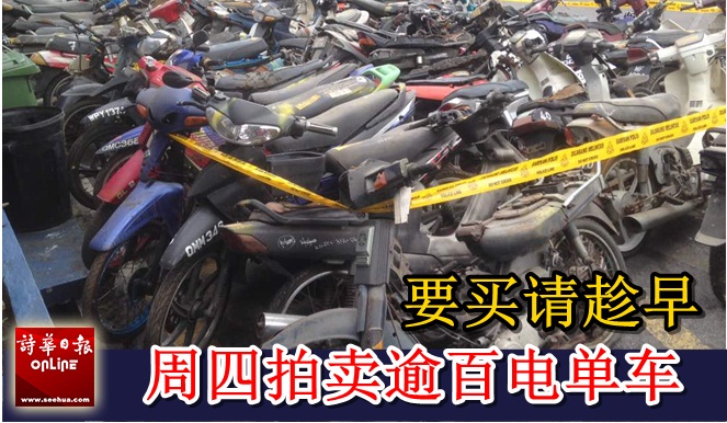 砂拉越北砂 美里警方拍卖逾百电单车 要买明天请趁早 2017年5月10日 (本报美里10日讯)逾百辆摩托车公开拍卖,有兴趣的民众受促尽早到场。Advertisement 美里警方将于明早9时在中央警局停车场举办行摩托车拍卖会,多达百辆摩托车公开让民众竞价购买。 据悉,这些拍卖的摩托车中,部份是从油棕园取缔行动中取得,部份无人认领,警方将这些已结案的摩托车进行拍卖,公开让所有民众购买。 消息称,大部份的摩托车机件完好,部份则需加以维修,民众可在拍卖会上看货竞价,价高者得。