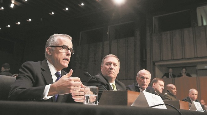 联邦调查局代理局长麦凯布週四向参议院情报委员会保证,该局將继续调查特朗普竞选团与俄罗斯政府之间可能的勾结,並且不会容许白宫干预调查。