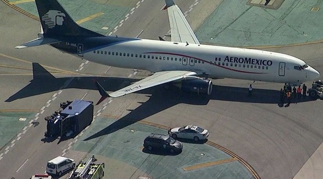 有关客机是从墨西哥市飞抵洛杉矶的墨西哥航空(Aeromexico)班机,机上载有146人。当地时间周六下午2时30分左右,飞机滑行时,右翼扫及货车,导致货车翻覆。
