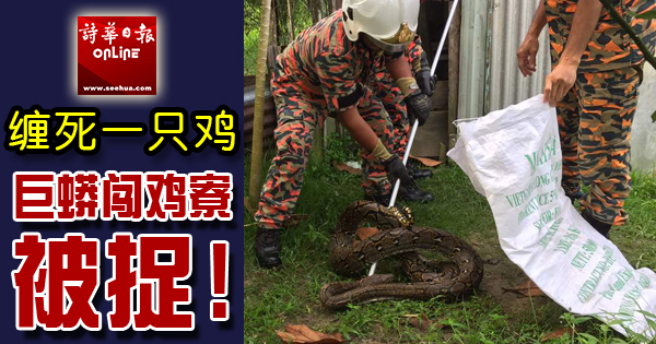 (本报马鲁帝23日) 鸡寮有巨蟒,消防员前往活捉。一名住在徙置区的华裔女屋主今早7时许进入鸡寮要喂鸡时,发现一条超过12尺的大蟒蛇,将一只活生生的鸡缠着,即刻致电向消防局求助。