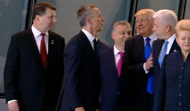 据报道,就在此次的布鲁塞尔举行北约高峰会议,各国元首参观北约新总部时,原本被众人挤在人群后的特朗普,突然抢到前头,一手推开马柯维奇,成功抢到镜头,而马柯维奇则露出尴尬的微笑。