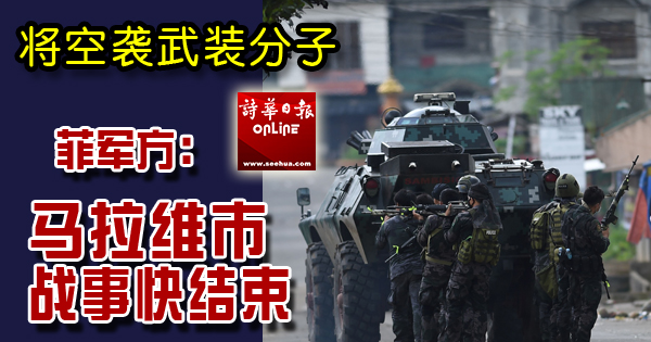 在当天菲武装部队和政府举行的联合记者会上,帕迪利亚说,除个别区域外,军方已几乎控制马拉维市,但目前仍有必要对个别区域进行空袭,以确保清剿全部武装分子,预计战事将很快结束。