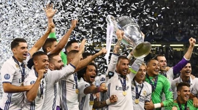 (加的夫4日综合电)凭著头號球星C.罗纳多梅开二度,西甲豪门皇家马德里在週六的第62届欧洲冠军足球联赛,在加的夫千禧球场以4比1大胜意甲霸主祖云杜斯,成为欧冠改制以来首支卫冕成功的球队,拿下队史第12坐冠军杯,同时也是他们近4个赛季第三次站在欧洲之巔!