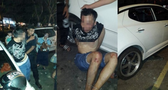 根据面子书上甲洞人群组今晚出现一段长达36秒视频,內容指一名华裔青年在甲洞新村夜市附近,砸破一辆轿车的车镜企图偷窃財物时,遭路过的民眾揭发,结果遭附近闻讯赶抵的民眾围捕,最终束手就擒。