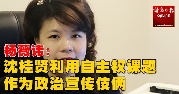 杨薇讳是针对砂人联党主席沈桂贤今日报章上发表“齐心争取砂自主权”课题上,如此做出言论。