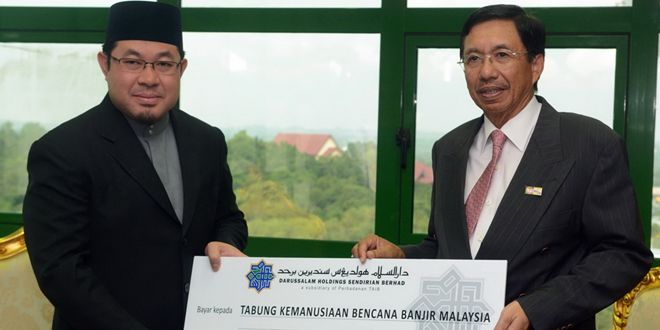 (汶莱斯市4日讯)达鲁萨兰控股公司(Darussalam Holding)今日移交总额汶币6000元的捐款给马来西亚水灾人道救援基金,以帮助减轻灾民们的负担。