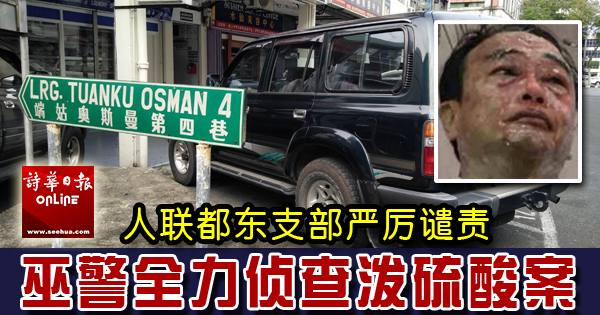 黄振渊是昨天中午12时许,在端姑奥斯曼路前往取车时遭人泼硫酸,结果灼伤脸部、左手及胸部。
