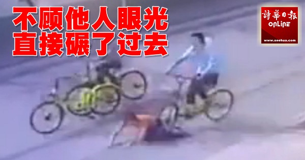 根据报导,近日这段影片在网路上热传,2名骑着青绿色脚踏车的男子,在大马路上追逐身穿橘衣的男童,完全不顾他人眼光,并从后方将他撞倒,骑着车从他腿部直接辗过去,经过20秒左右,2名男子折返回来,对着坐在地上的男童拳打脚踢,还用力的推了他一下就离开,男童的朋友赶紧上前搀扶,协助他离开就医。