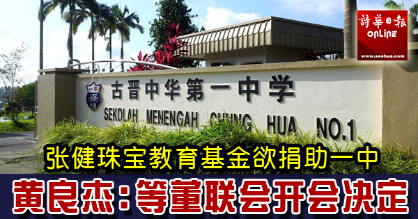(本报古晋10日讯)古晋中中校董会主席拿督黄良杰披露,古晋中华第一中学校长日前接获“张健珠宝教育基金会”代表的联系,表示要捐款给该校。