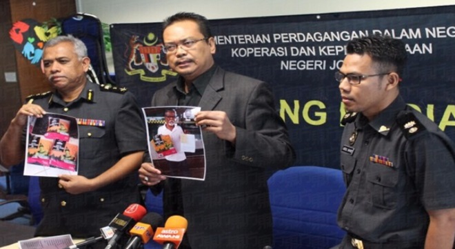 凯鲁安华今日召开新闻发佈会,证实该间霸级市场没有售卖假米。出席者包括柔州贸消局执法组组长艾利斯和行动组组长阿都瓦希。