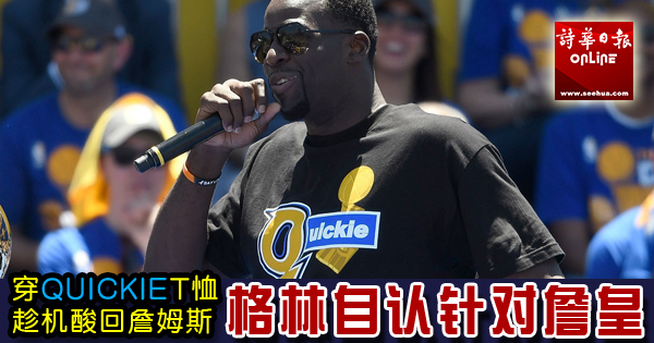 格林的这件球衣针对詹姆斯,这可源于去年骑士队夺冠游行。当时,詹姆斯所穿的T恤衫上,印有“Ultimate Warriors”的字样。当时,詹皇的解释是“纯属意外,我原本有好几件T恤衫,但庆祝时被香槟淋湿了,所以只剩下这件了。”