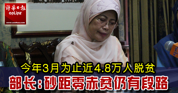 她续说,政府透过各样的扫除贫穷计划来协助人民脱离贫穷线,而有关的计划也凑效,截至今年三月份为止,脱贫的人数为4万7812人。