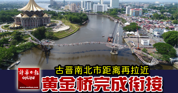 (本报古晋16日讯)目前正在如火如荼搭建中的砂河滨公园黄金桥今天成功衔接,为古晋南、北市奠下一个新里程碑。