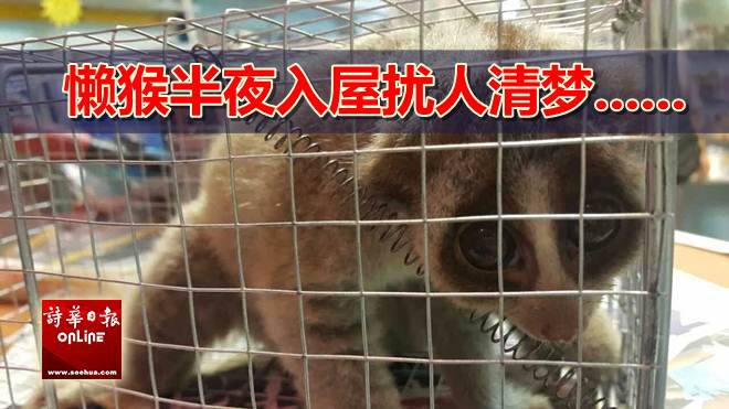 一只懒猴于今日清晨5时许,被发现闯进一间位于加帛诗里烈路的住家,屋主为防家人受到攻击而将它擒下,然后放回郊区的森林。