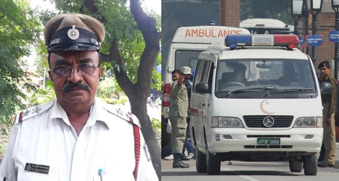 印度班加罗尔一名交警尼加林加帕(ML Nijalingappa)在指挥交通时,挡下总统穆克吉(Pranab Mukherjee)的车队,让救护车优先通过。