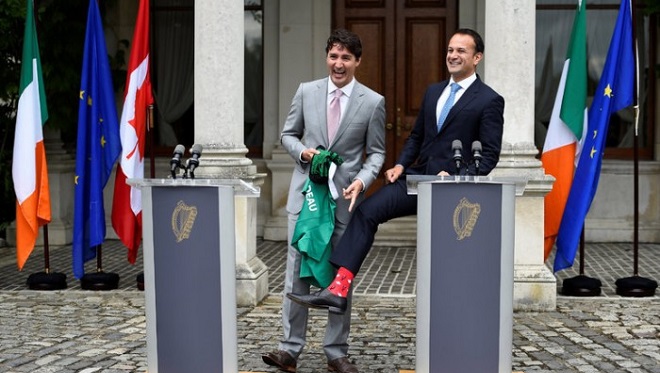特鲁多週一晚抵达爱尔兰进行访问,他和甫於上月当选的爱尔兰新任总理瓦拉德卡,4日在都柏林相见欢。