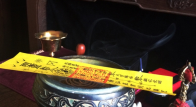 翁春林称没有拿到钱,符咒是师傅叫他代画。他从来没跟受骗者谈及符咒的事。