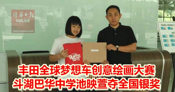 (本报斗湖二十五日讯)2017年Toyota(丰田汽车)“全球梦想车创意绘画大赛马来西亚全国赛”,斗湖巴华中学初一学生池映萱以一幅“会移动的家” 赢得全国第二名银奖包括美式越野脚踏车一部和奖状一份,为校争光。