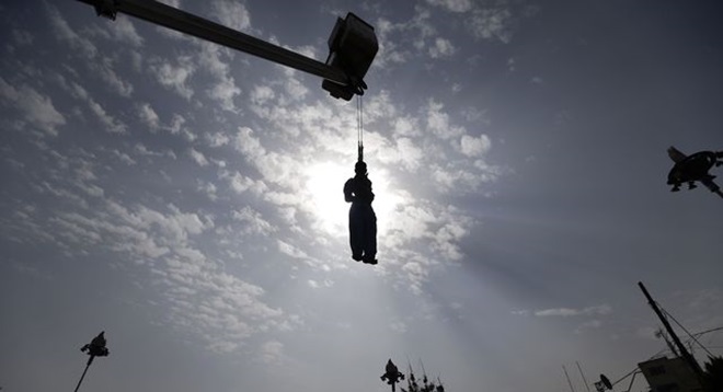 叶门22岁男子阿萨凯特(Hussein al-Saket),因为承认性侵并杀害一名4岁女童,被判处死刑,当地时间周一(14日)中午,阿萨凯特被警察带到首都萨那(Sanaa)市中心的解放广场(Tahrir Square)正中央,脸部朝下趴在地上,当着数千围观民众面前,刽子手从背后对他的着心脏连开5枪毙命,随即用吊车将他的尸体高高吊在半空示众。