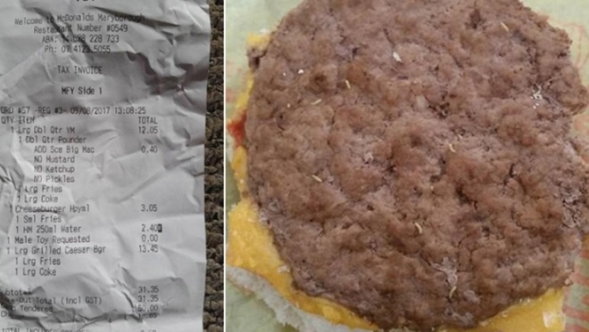 麦克休掀开面包一看,惊见数十条活生生的蛆虫在汉堡上爬行。她立即用手机拍下存证,并把汉堡冷藏起来,保留证据。
