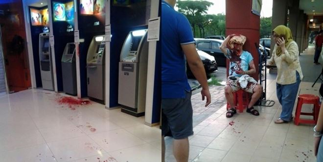 (八打灵再也9日讯)灵市哥打白沙罗週日傍晚发生一宗骇人抢劫事件,一刀匪闯进银行提款室內,喝令一名华裔男子提钱,但事主只提出1000令吉,劫匪不满欲抢夺提款卡,双方发生激烈爭夺,导致事主头部及手部被刺伤,缝了14针,损失3600令吉財物!