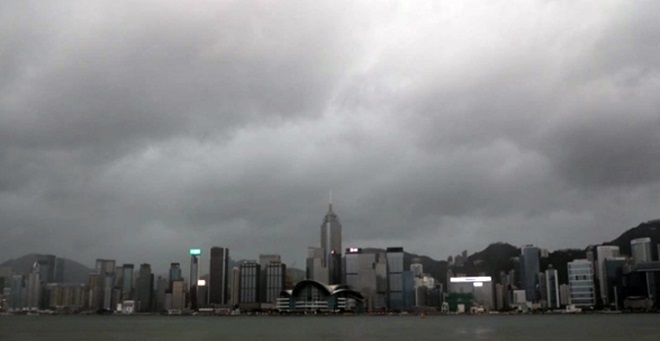 「天鸽」台风暴风圈远离台湾,逼近香港,今早8时10分,香港天文台发出「9号烈风或暴风强信」与黄色暴雨警报,「9号风球」警报是香港风力警报中仅次于「10号风球」的信号,当局呼吁民众不要外出,在有遮蔽的地方就地躲避,紧闭门窗并且远离窗户。