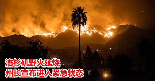 鉴于美国加州贝班克(Burbank)附近的野火持续延烧,州长布朗(Jerry Brown)今天宣布洛杉矶郡进入紧急状态。