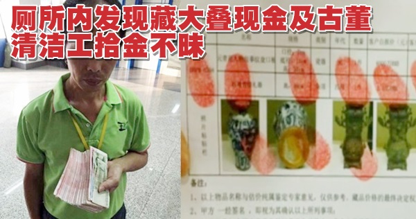 中国深圳地铁北站一名清洁工,周三(6日)下午在东广场厕所清洁时,发现一个黑色手提包,里面除有现金,还有一张拍卖公司擬於下月在新加坡拍卖、总值3亿元人民幣(约1.94亿令吉)的古董暂放单。他立即將手袋交给北站民警,最终找到失主。失主事后想答谢2万元,但清洁工婉拒,並称「这都是我应该做的」。