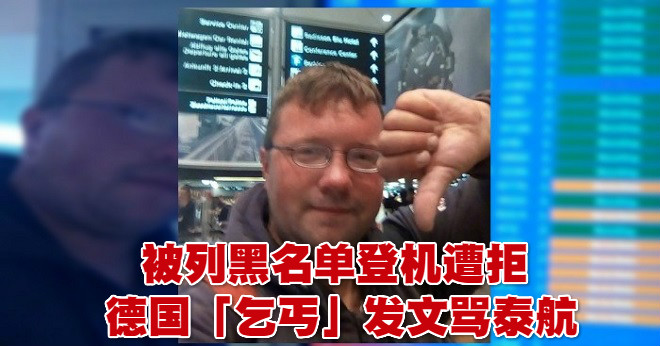 被泰国列入入境黑名单的德国「乞丐」本查明(Benjamin Holst),日前在瑞士苏黎世机场,通过面子书发布照片,以倒竖大拇指的形式表达对泰国国际航空的不满,还以不雅言语责骂泰航。估计是因为泰航拒绝本查明登机,才引发本查明以这种方式表达不满。