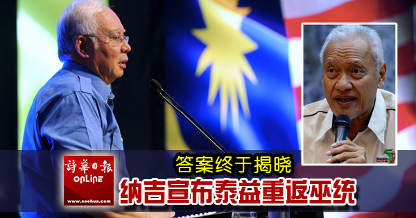 首相兼巫统主席拿督斯里纳吉宣布,前乡区发展部长兼前雪州大臣丹斯里莫哈末泰益重返巫统。