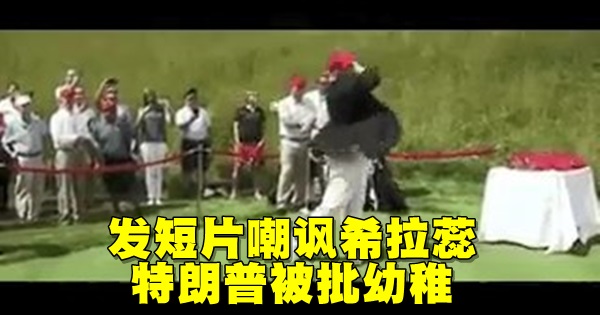 正在纽泽西州高尔夫球俱乐部度假的特朗普,17日转发一段GIF短片,这支短片的说明写着「特朗普挥出惊人一杆#CrookedHillary(狡诈的希拉蕊)」。