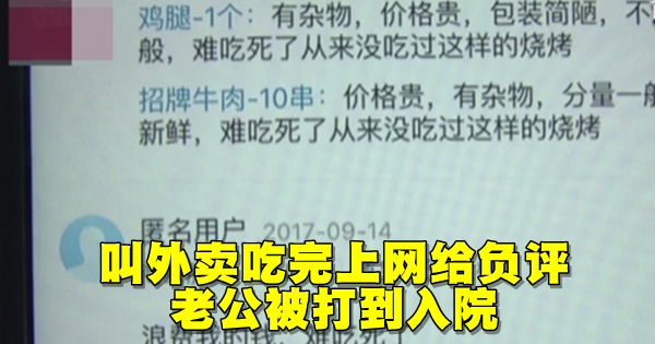 中国有位女子在订餐平台,向附近的烧烤店点了外卖,吃完后觉得味道普通、部分没烤熟,于是上网给了差评,没想到烧烤店员工看了相当火大,冲上们将她丈夫打成重伤送加护病房。