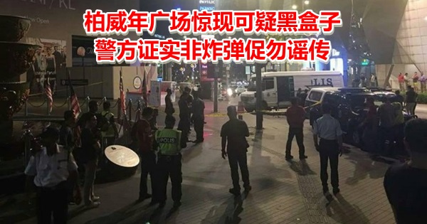 (吉隆坡3日讯)武吉免登柏威年广场外惊现可疑黑盒子,已证实並非炸弹,警方促民眾勿再谣传!