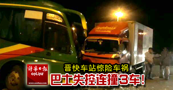 上述意外事故,是今晚7时许发生在6哩快车站的红绿灯处。事发当时,肇祸巴士是从伦乐载着近20名乘客往6哩快车站前进;被撞的3辆车子则是从机场方向驶来,在红绿灯处等绿灯时,突然被从7哩方向驶来、正前往快车站的巴士在转入时撞及。