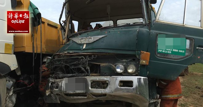 罗里撞罗里事件于今午1时许,在本鲁路的支路发生。美里消防与拯救局在接获求救电话后,火速派员前往救人。