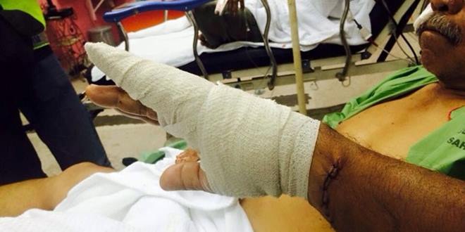 他说,其父亲遭到匪徒用刀袭击后,身体许多部位包括头顶、额头、手及脚遭砍,重伤不支倒地,匪徒见状后,急忙乘摩哆逃走。