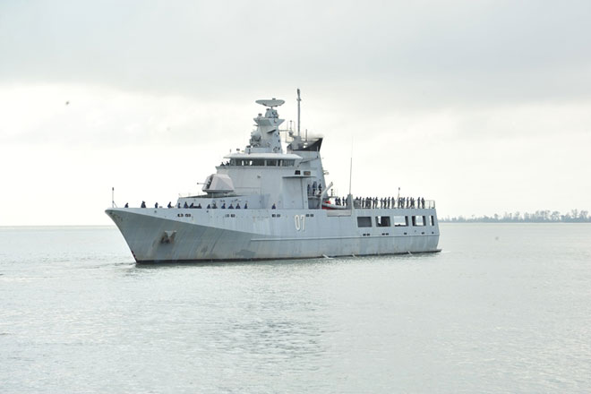 (汶莱斯市13日讯)汶莱皇家海军近海巡逻舰KDB Darulehsan昨天启航,赴马来西亚浮罗交怡,准备参加本月17至21日配合第13届浮罗交怡国际海事及航天展而举行多边海上演习。
