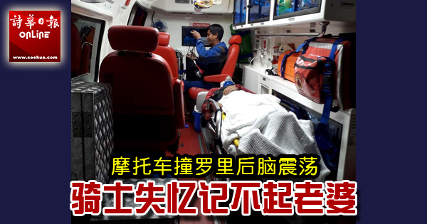 砂拉越南砂 摩托车撞罗里后脑震荡 骑士失忆记不起老婆 2017年10月29日 (本报古晋29日讯)摩托车和出路的罗里发生碰撞,造成摩托车骑士脚部骨折及脑震荡短暂失忆,连到医院探望的妻子都记不起。Advertisement 此宗意外事故,是前天下午5时许,在BDC往八点地的路口发生。当时,摩托车是朝向八点地方向前进,罗里从该处路口(汉利方向)出路,结果导致车祸的发生。 肇祸后,伤者由接到通知来到现场的消防救护车援助,送往古晋中央医院急诊部接受治疗。