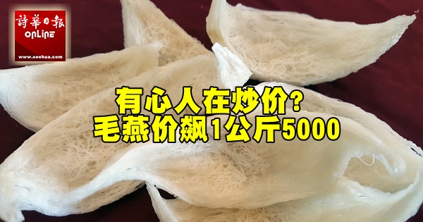 据记者探悉本地毛燕市价,今年头毛燕售价1公斤介于2000至3000令吉,来到7月份升至3000令吉左右,而今日已经飙升至5000令吉以上。