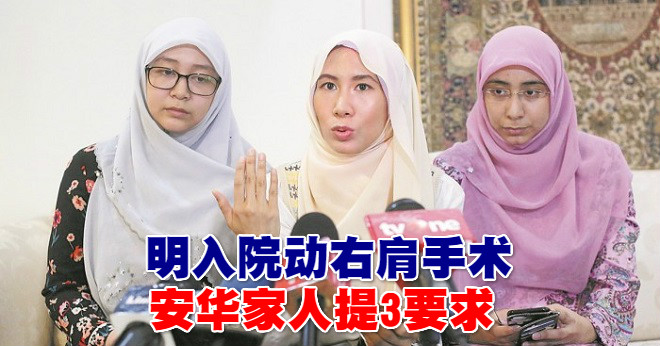 安华次女努鲁努哈代表家人向政府当局提出了3个要求,包括促请当局允许人权组织能在手术前后与安华见面,以监督手术过程及术后的康復情况。