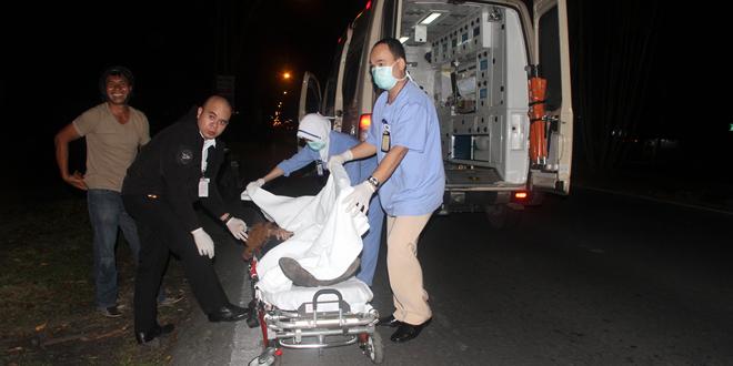骑士在发现女后座摔在路上后,马上停下查看。这时碰巧1辆救护车经过而被骑士拦下,医护人员马上下车给予女子检查,并将她送来急诊部接受进一步护理。
