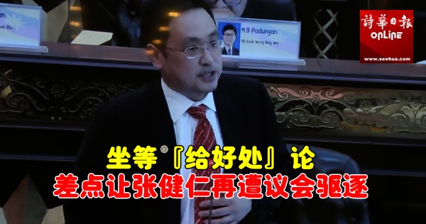 哥打圣淘沙区州议员张健仁今午差点因为日前在议会内提及的“给好处”(Gratification)一词,再次遭遇被议会禁足的命运。
