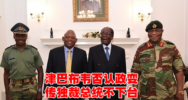 (哈拉雷17日讯)津巴布韦外交部和国防军,当地时间周四在首都哈拉雷联合举行吹风会,否认发生政变说法,表示军队仍效忠总统穆加贝,吁民眾和外国公民无需担心安全。而遭到拘禁的穆加贝,当天与军方召开紧急会谈,有传他仍不愿下台。