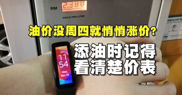 “我听见旁边开始有人在讨论油价,因为还没有到凌晨12点,RON95的油价应该是每公升2令吉31仙,但油泵显示器所记录的价格却是全新一周的燃油顶价——2令吉38仙。”